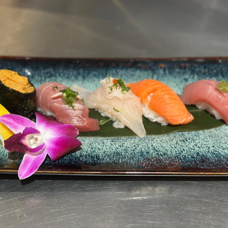 Uni, oyster, quail egg, salmon roe, masago, ponzu and green onion.